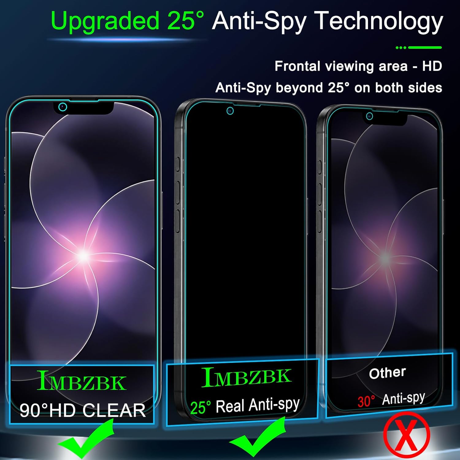 Cost-Effective & Enthusiastic Customer Service: Committed to providing One-Stop purchase experience, no need spend more on other accessories. The IMBZBK bundle includes [3* Privacy Screen Protectors] [3* Camera Protectors] [Auto- Dusting Removal Installation Tool] [3* Screen Cleaning Kits], ensuring complete protection. If you encounter any issues, you can send the information to us through the Amazon Message Center, we will provide you with satisfactory service within 24 hours.