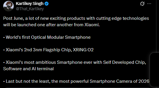 A new leak from Kartikey Singh suggests Xiaomi is planning a handful of ambitious devices for the second half of 2026. Not just routine upgrades either. The focus seems to be on things like camera hardware, modular design, and its own silicon.